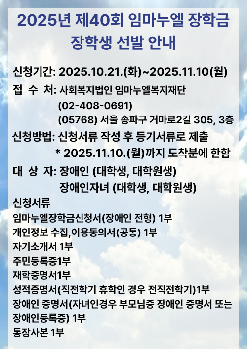 Á¦ 40ȸ ÀÓ¸¶´©¿¤ ÀåÇÐ±Ý ÀåÇлý ¼±¹ß ¾È³»