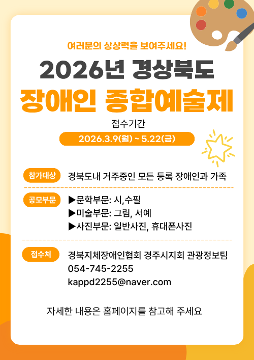 2026³â Àå¾ÖÀÎ Á¾ÇÕ¿¹¼úÁ¦ ¾È³»