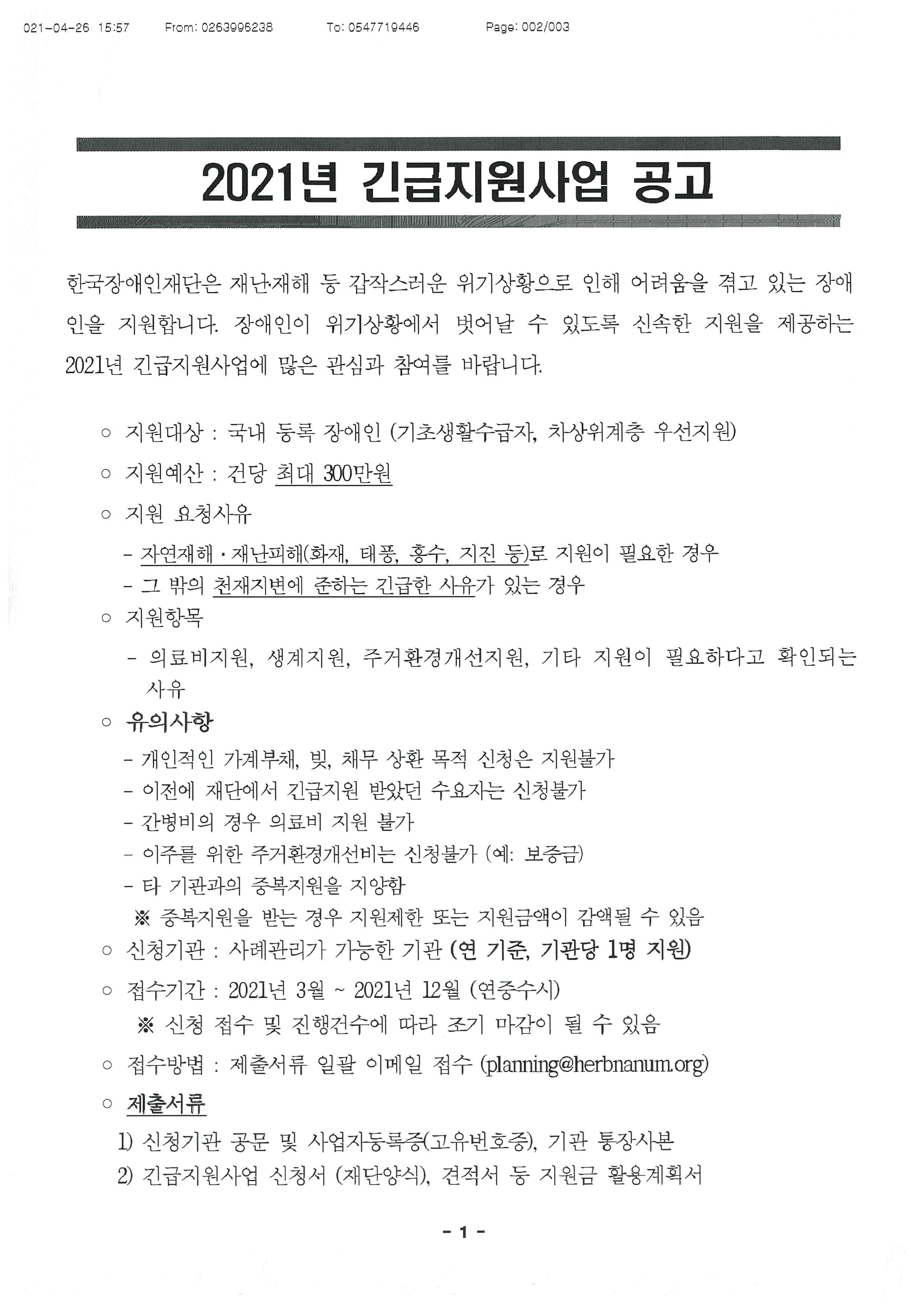 ![]() ![]() »ç ¾÷ ¸í : 2021³â ±ä±ÞÁö¿ø»ç¾÷ |
